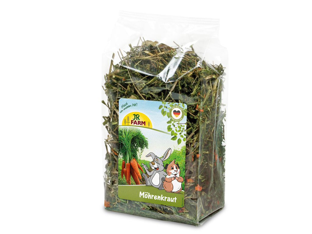 JR Farm Gulerodsurt er en ren og naturlig specialitet til kaniner og gnavere, fremstillet af skånsomt tørrede gulerodstoppe af høj kvalitet. Produktet består hele guleroden de grønne blade og stilke fra friske gulerødder og selve guleroden – helt uden tilsætning af farve, aroma eller fyldstoffer. Denne enkle, men yderst næringsrige snack giver dit kæledyr en naturlig smagsoplevelse og minder om den føde, smådyr selv ville søge i naturen.